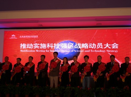 陸總(左五)榮獲北京經(jīng)濟(jì)技術(shù)開發(fā)區(qū)科技創(chuàng)新先進(jìn)個(gè)人稱號(hào)